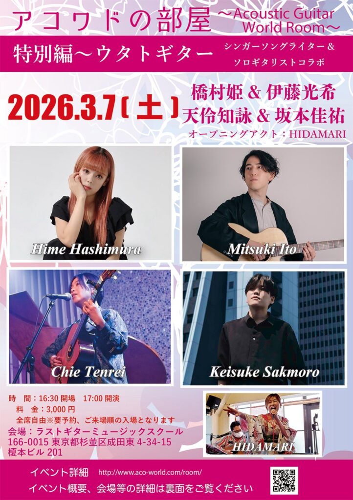 ソロギターのライブイベント、アコワドの部屋特別編!